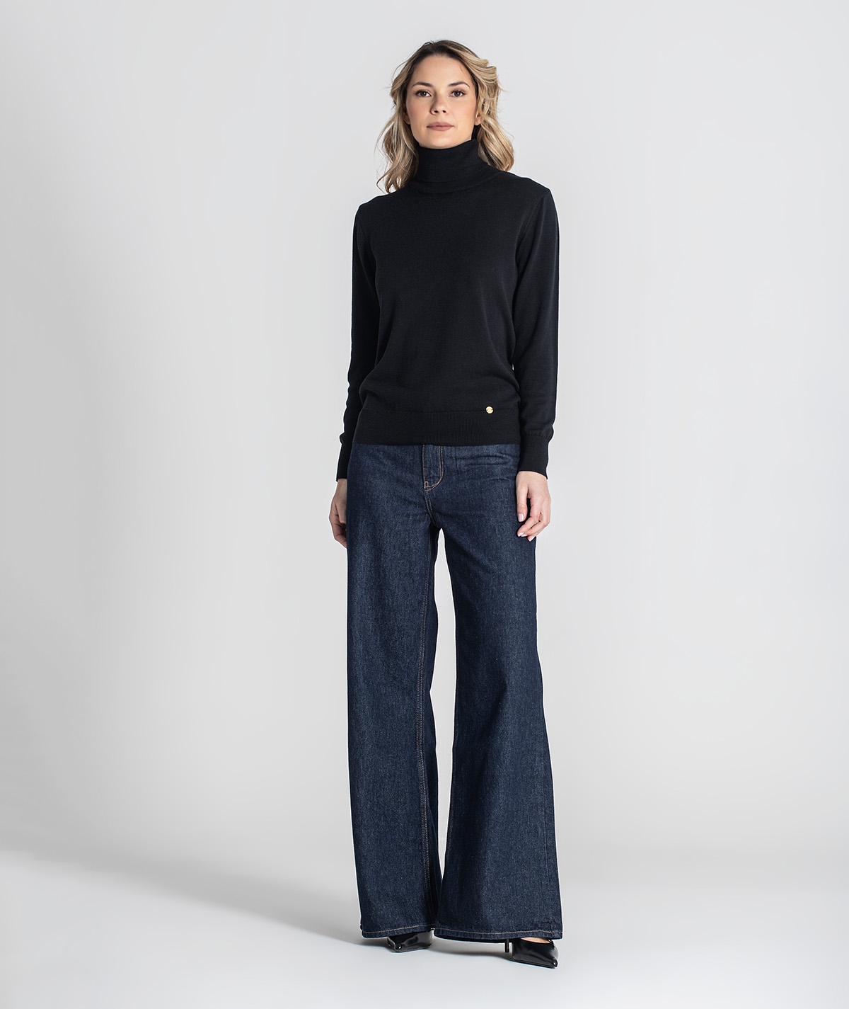 CAMISOLA PRETA COM GOLA ALTA RUGA
