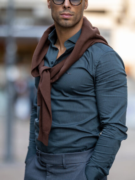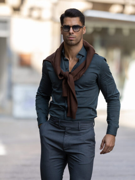 CAMISA GOLA ITALIANA COM RISCA SLIM FIT VERDE ZOLF