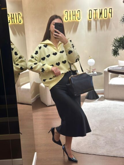 CAMISOLA AMARELA MANTEIGA COM CORAÇÕES RUGA