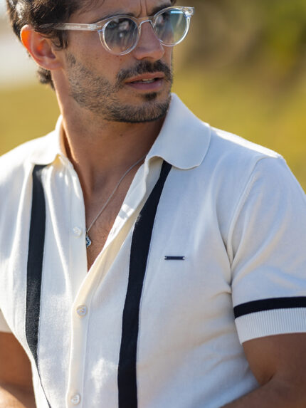 Camisa de linho com gola italiana e corte slim fit. Graças à sua composição que também inclui algodão, é muito mais confortável e enruga menos que uma camisa de linho normal. Fabricada em Portugal. O padrão Slim Fit é uma versão atualizada do clássico e casual com propriedades que permitem uma maior adaptabilidade sem descuidar a transpirabilidade e o conforto. Fabricada em Portugal. Composição: 55% linho e 45% algodão