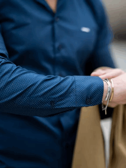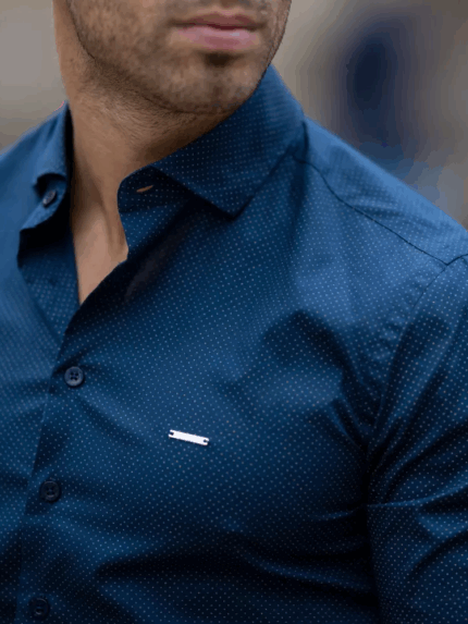 CAMISA GOLA ITALIANA AZUL COM PINTA CAMEL ZOLF