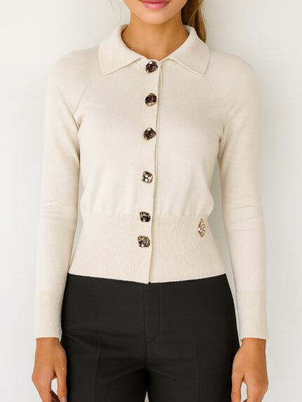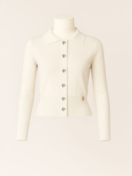 CASACO DE MALHA BRANCO COM BOTÕES DOURADOS SAHOCO