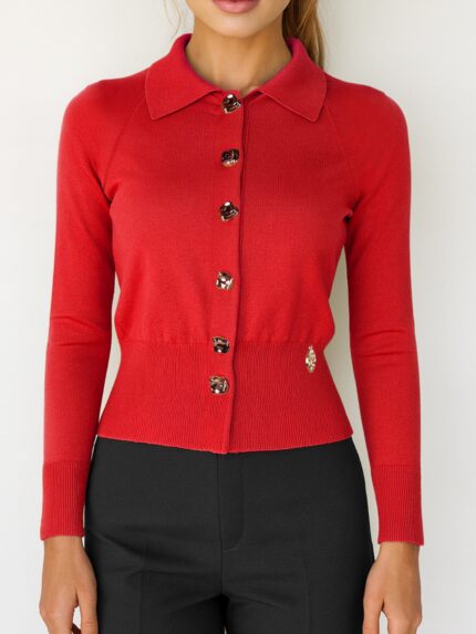 CASACO DE MALHA VERMELHO COM BOTÕES DOURADOS SAHOCO