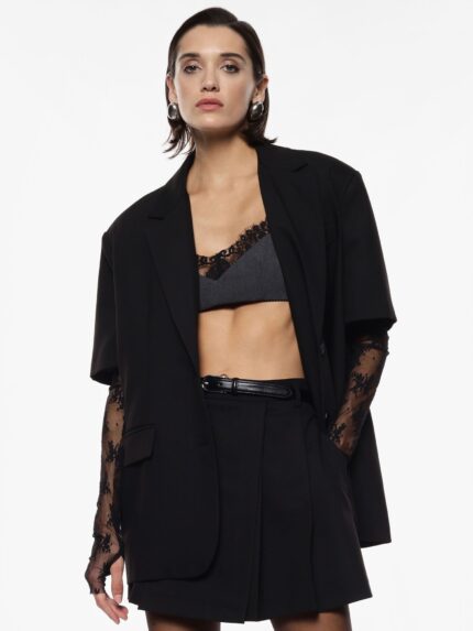 Com decote em V e corte solto, este top Rinascimento conjuga elegância e originalidade num design tipicamente italiano. O contraste entre os tecidos e o brilho subtil tornam-no perfeito para combinares com calças ou saias de cintura subida em looks de festa ou ocasiões especiais.
