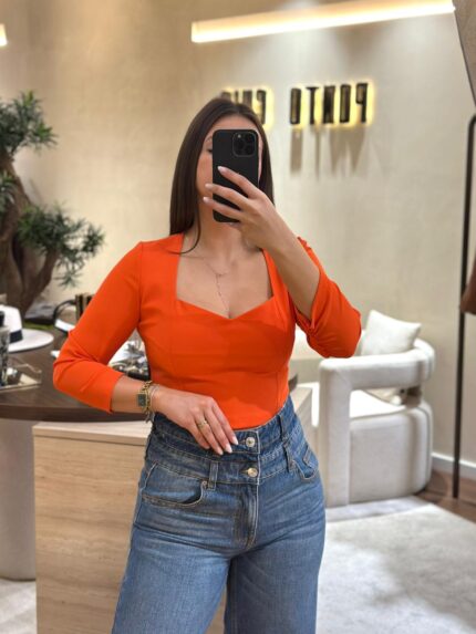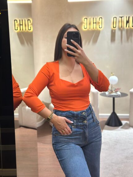 TOP LARANJA COM DECOTE QUADRADO RINASCIMENTO