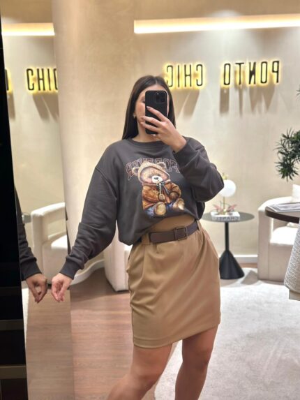 Liberte seu estilo urbano com esta saia curta plissada. O design moderno é realçado por uma inscrição ousada que captura toda a atenção. Perfeita para quem busca um visual distinto e sofisticado, esta saia atende às necessidades dos moradores mais exigentes da cidade, adicionando um toque de criatividade ao seu guarda-roupa diário. Composição: 63% poliester, 34% viscose, 03% elastano