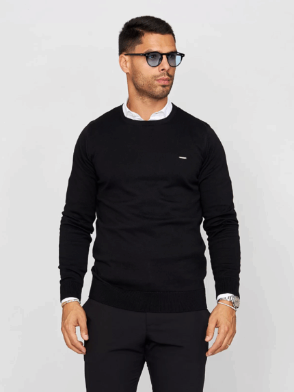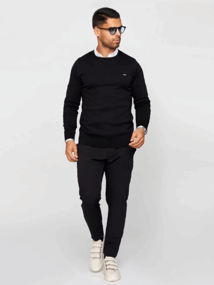 A camisola de tricot preta da Zolf é um clássico moderno que combina conforto, qualidade e elegância discreta. Produzida em 100% algodão, apresenta uma textura suave e respirável, ideal para o dia a dia e perfeita para os dias frios da estação.
