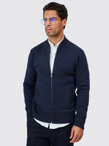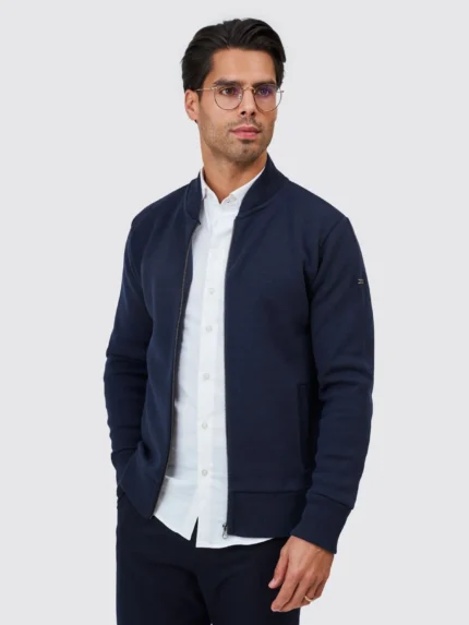 O fecho frontal em zip e a gola subida garantem praticidade e estilo, enquanto a textura subtil do tricot acrescenta profundidade e sofisticação ao visual. Ideal para looks casuais elegantes, tanto em camadas com camisas como usado sozinho.