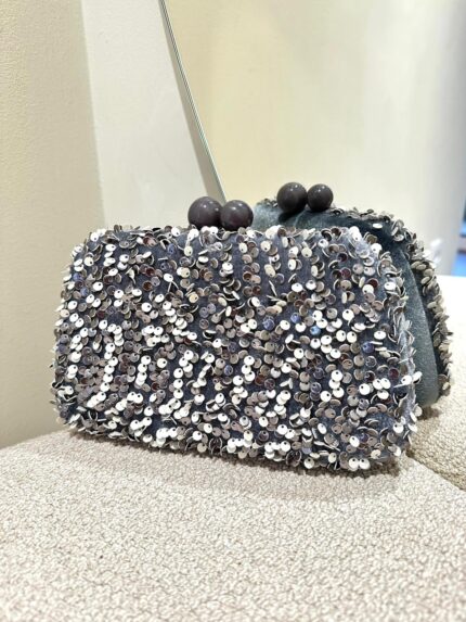 CLUTCH DE VELUDO COM LANTEJOULAS CINZA PONTO CHIC