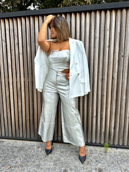 CALÇAS CINZENTO METALIZADO RINASCIMENTO