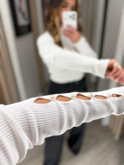 CAMISOLA CANELADA COM GOLA ALTA E DETALHE NAS MANGAS PONTO CHIC