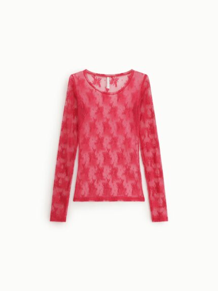 CAMISOLA EM TULE ROSA COM PADRÃO FLORAL IMPERIAL