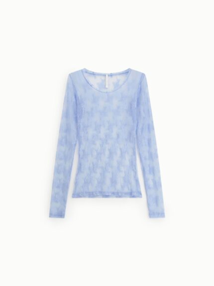 CAMISOLA EM TULE AZUL COM PADRÃO FLORAL IMPERIAL