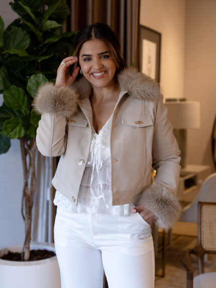 CASACO CURTO EM EFEITO PELE BEGE COM BOTÕES PONTO CHIC