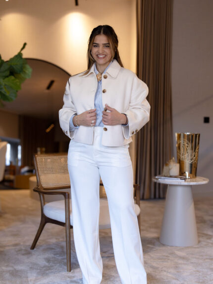 CASACO CURTO CRU COM GOLA CLÁSSICA E BOTÕES PONTO CHIC