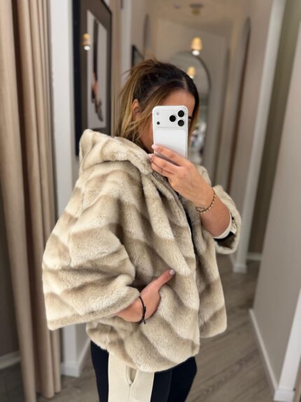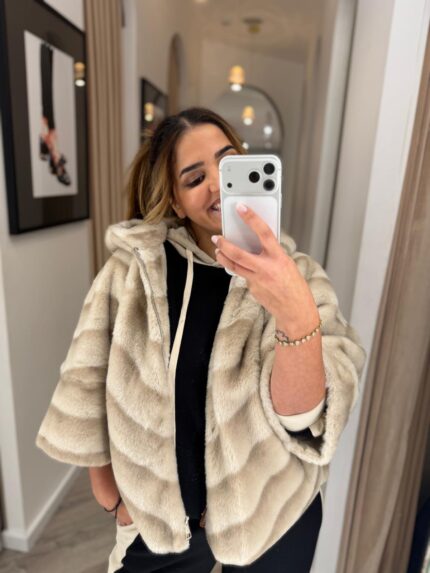 CASACO/CAPA BEGE EM PÊLO COM FECHO PONTO CHIC
