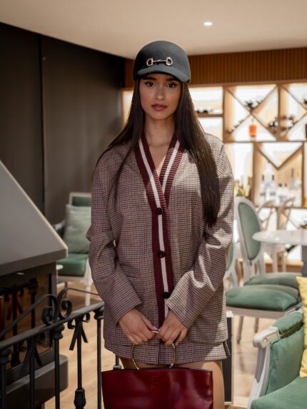 CASACO XADREZ BEGE E BORDÔ IMPERIAL