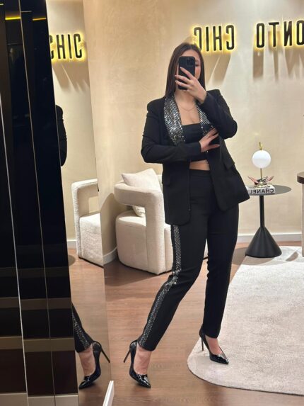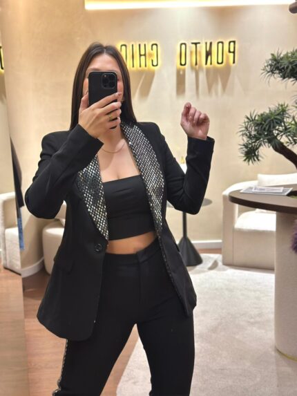 BLAZER PRETO COM LAPELAS DE LANTEJOULAS RINASCIMENTO