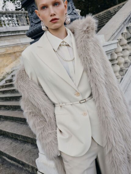 CASACO BEGE COM BOLSOS E PELO PONTO CHIC