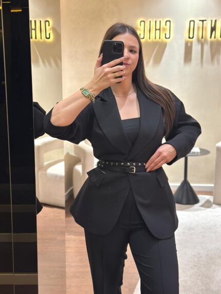 BLAZER PRETO ESTRUTURADO COM CINTO SAHOCO