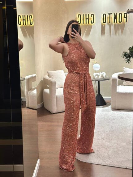 MACACÃO LANTEJOULAS LARANJA PONTO CHIC