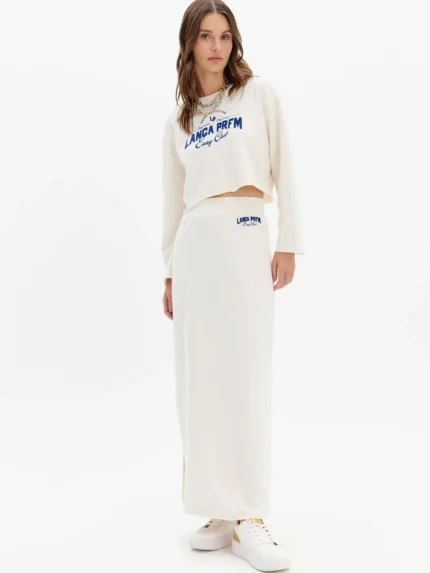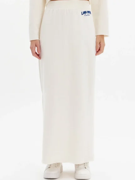 SAIA COMPRIDA TRICOT BRANCA E VERMELHA COM LOGO LANÇA PERFUME
