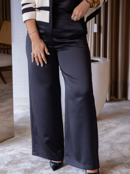 CALÇA PRETA DE CINTURA SUBIDA COM CORTE RETO IMPERIAL