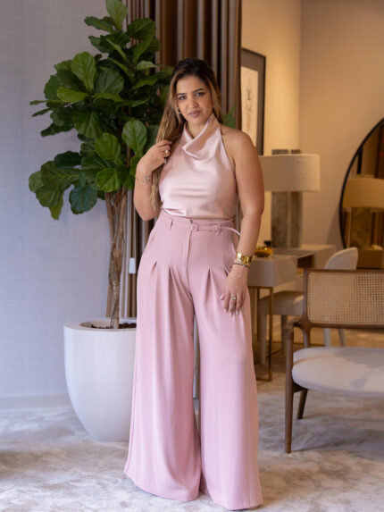 TOP ACETINADO COM DECOTE DRAPEADO ROSA IMPERIAL