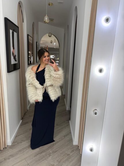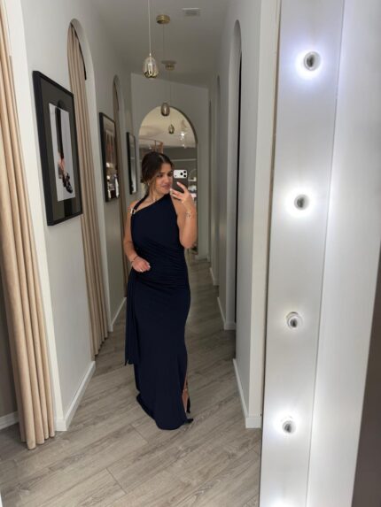 €119.90VESTIDO AZUL MARINHO COM PORMENOR DOURADO E FAIXA LATERAL PONTO CHIC