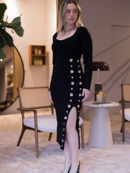 €181.00VESTIDO PRETO COM DETALHES DOURADOS PONTO CHIC