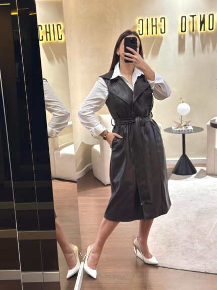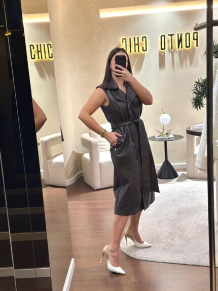 VESTIDO CASTANHO COMPRIDO EM ECOPELE MISS YOU