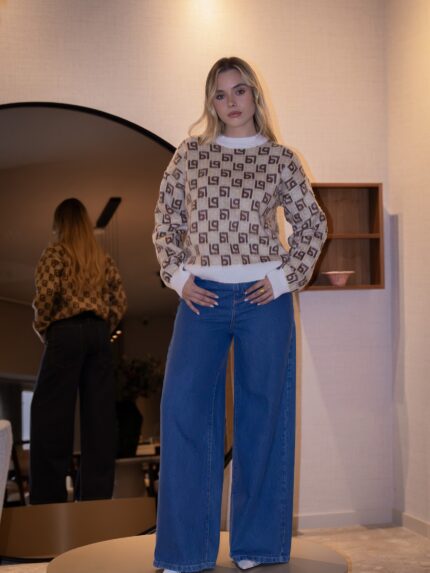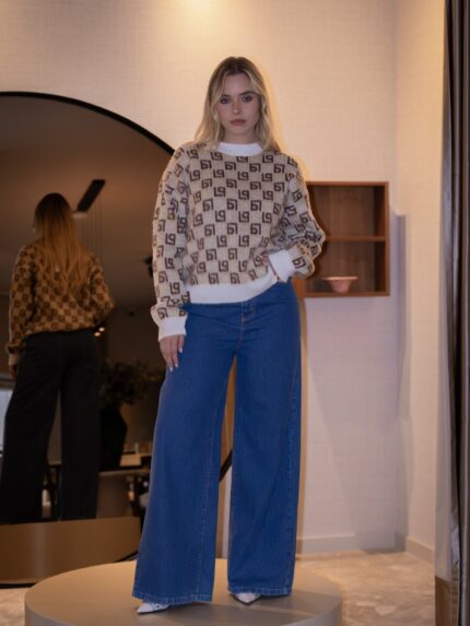 €212.90BLUSA BEGE COM ESTAMPA PRETA RINASCIMENTO