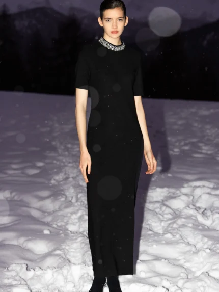 VESTIDO CASTANHO COMPRIDO EM ECOPELE MISS YOU