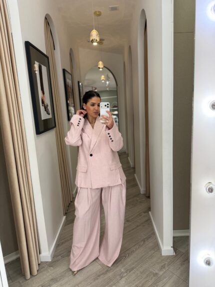 CALÇA ROSA CLARO DE CORTE DIREITO RINASCIMENTO