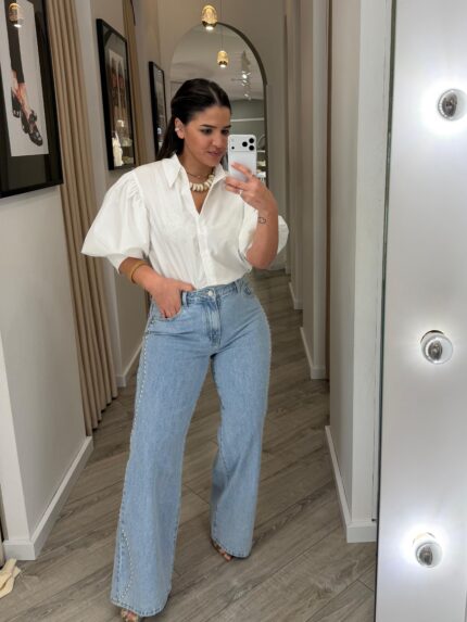 CAMISA BRANCA COM APLICAÇOES NA GOLA RINASCIMENTO