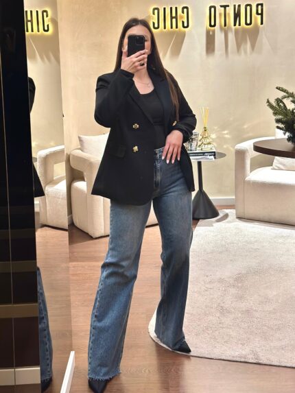 CALÇA DE GANGA WIDE LEG TALL COM BAINHA DESFIADA PONTO CHIC