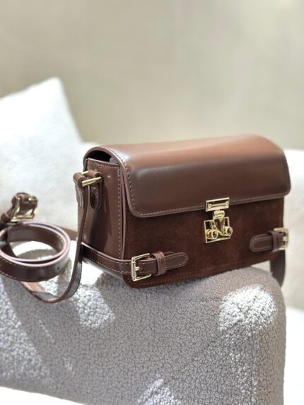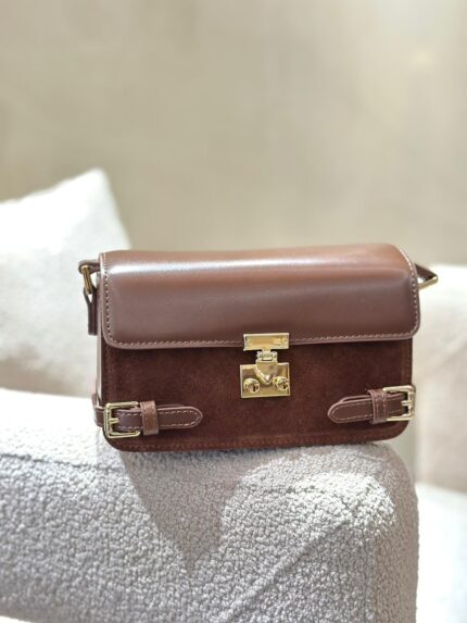 €134.90MALA CASTANHA EM PELE ELEH COM FECHO DOURADO E ALÇA TIRACOLO