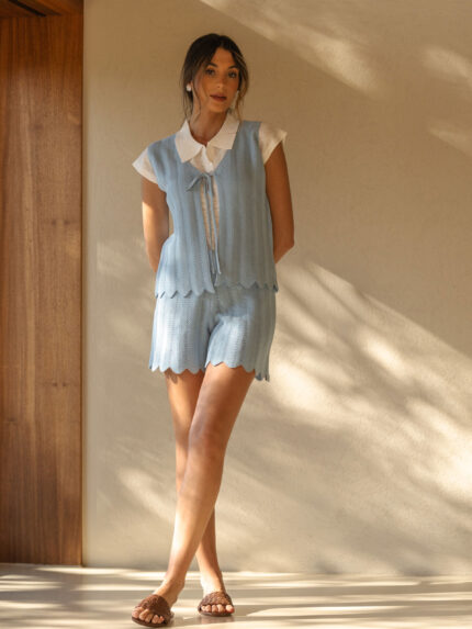 €72.50COLETE DE MALHA TEXTURADA AZUL FERRACHE