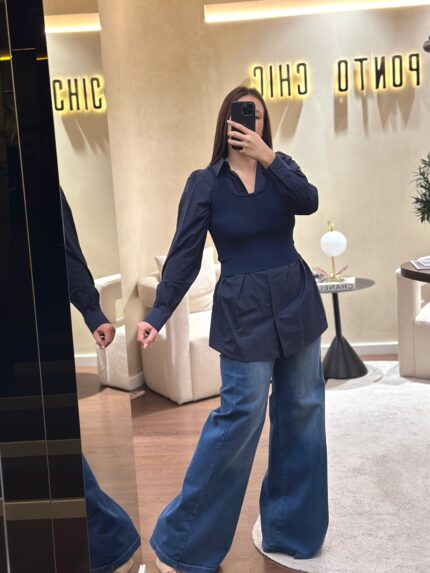 BLUSA EM CREPE AZUL ICEBERG WOMEN