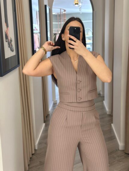 CAMISOLA CASTANHA DE MALHA COM GOLA CANELADA IMPERIAL