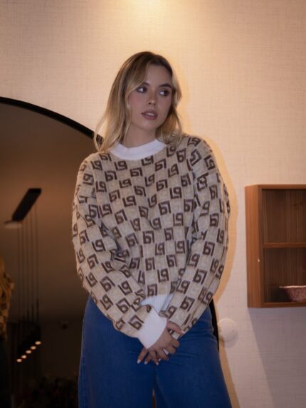 €146.00CAMISOLA TRICOT BEGE E CASTANHA COM MONOGRAMA LANÇA PERFUME