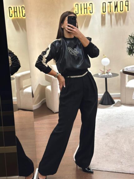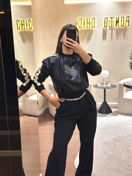 €104.00SWEAT EM POLIPELE PRETA COM DETALHES CONTRASTE LANÇA PERFUME