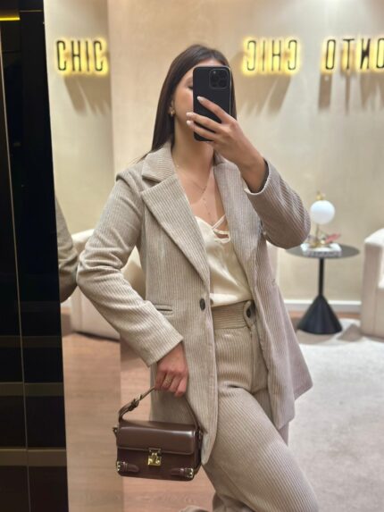 €164.50BLAZER BEGE EM TECIDO CANELADO MISS YOU