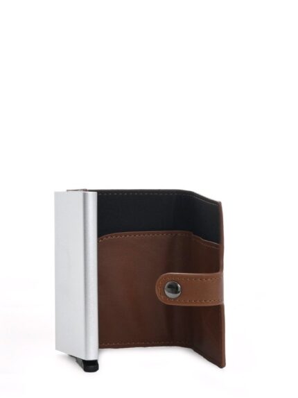 CARTEIRA CASTANHA EM PELE COM CAIXA DE CARTÕES EM ALUMÍNIO PONTO CHIC