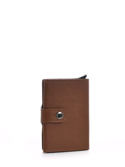 €29.90CARTEIRA CASTANHO ESCURO COM CAIXA DE CARTÕES EM ALUMÍNIO PONTO CHIC