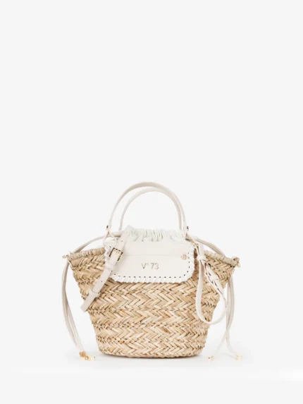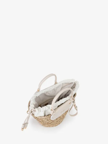BOLSA CESTO EM PALHA COM DETALHES EM PELE BEGE PONTO CHIC