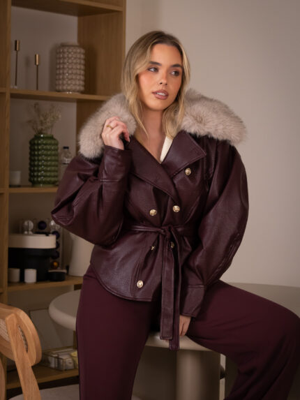 CASACO CURTO BORDEAUX EM ECOPELE COM PELO PONTO CHIC