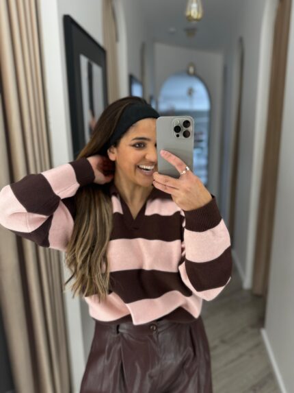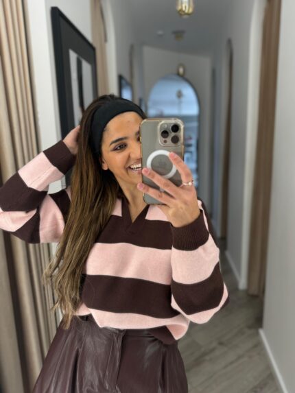 €39.90POLO DE MALHA ÀS RISCAS CASTANHO E ROSA PONTO CHIC