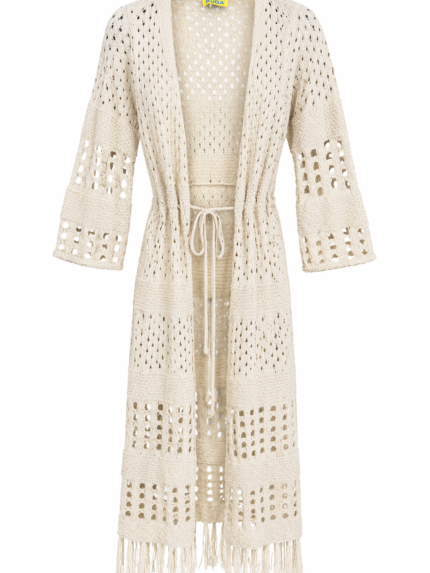 KIMONO EM MALHA BEGE COM AMARRAÇÃO RUGA