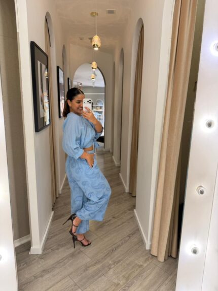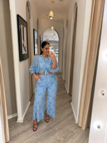€58.90CALÇA CULOTE AZUL COM BORDADO INGLÊS RUGA